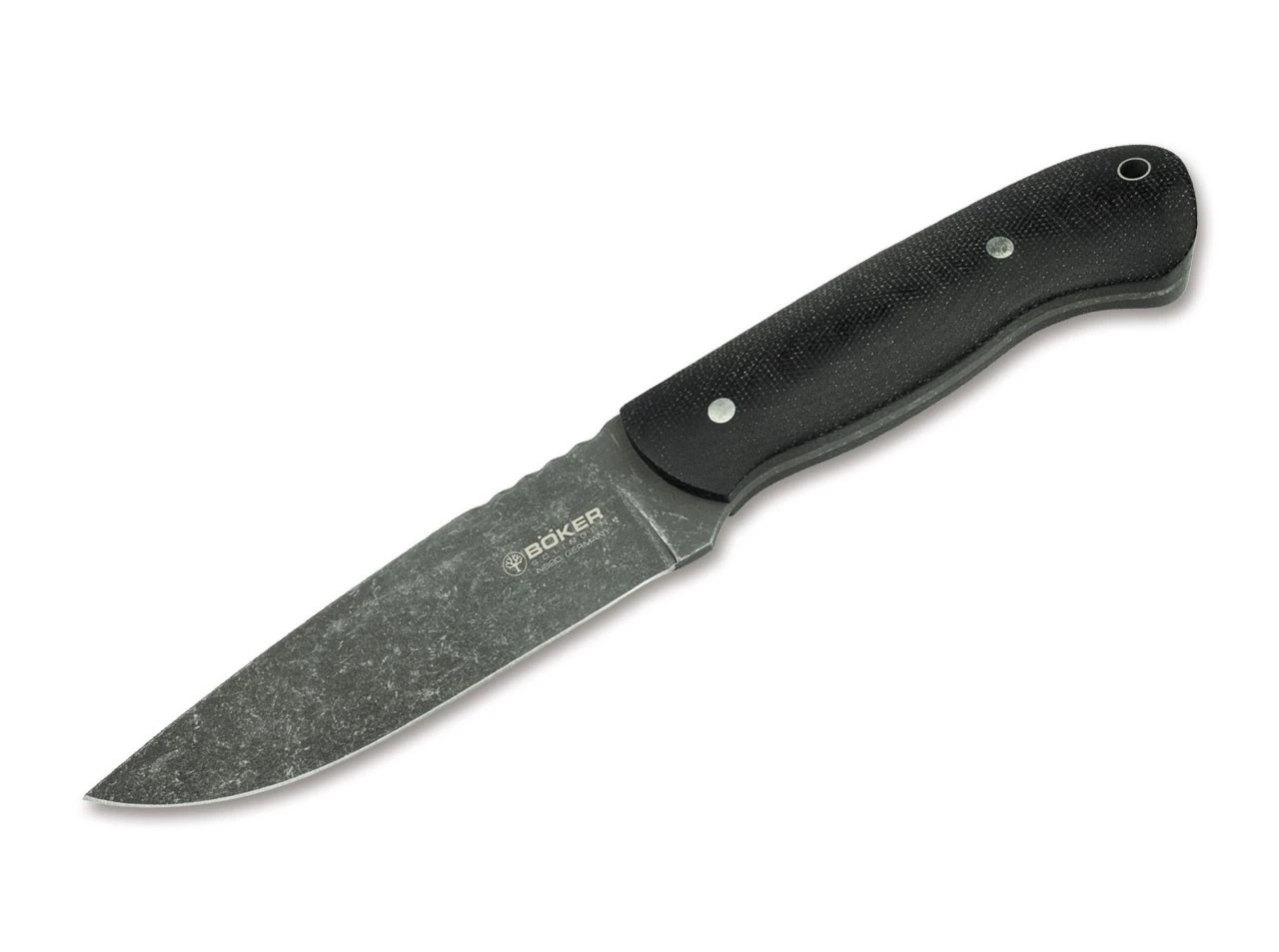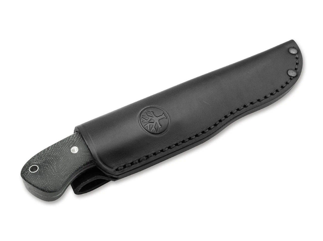 Das von Kosie Steenkamp entworfene Böker Drikas ist in der Outdoor-Variante mit einer dunklen Klinge aus N690 ausgestattet, die mit einem widerstandsfähigem Acid-Wash-Finish versehen ist. Das aufwendige Filework am Klingenrücken ist nicht nur ein besonders dekoratives Element, sondern kann auch als Daumenauflage genutzt werden und erhöht somit die Griffsicherheit. Auch die konturierten Griffschalen aus schwarzem Micarta sind für den Einsatz in der Wildnis oder auf der Jagd bestens geeignet und liegen dank der feinen Texturierung stets sicher in der Hand. Mit Fangriemenöse und praktischer Köcherscheide aus hochwertigem Leder. Handgefertigt in der Böker Messer-Manufaktur Solingen.