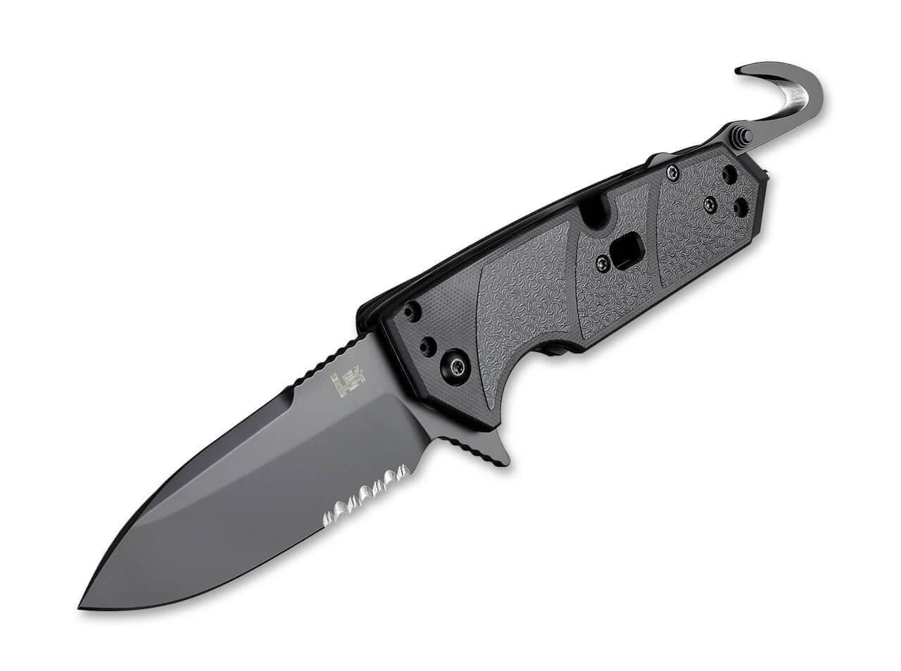 Das Heckler & Koch Karma wird von Hogue produziert und versteht sich als multifunktionales Rettungsmesser für den Notfall. Der schwarze G10-Griff liegt sowohl mit als auch ohne Handschuh sicher in der Hand. Die beschichtete Klinge aus 154CM verfügt über einen Teilwellenschliff und wird per Flipper geöffnet. Der im Griffrücken versenkte Gurtschneider lässt sich schnell ausklappen und durchtrennt faserige Materialien sicher und mühelos. Hartmetall-Glasbrecher, Sauerstoffschlüssel im Griff und umsetzbarem Clip (Tip-up/Tip-Down) machen das Karma zur richtigen Wahl für Ersthelfer, Rettungskräfte und alle, die auf den Ernstfall vorbereitet sein wollen.