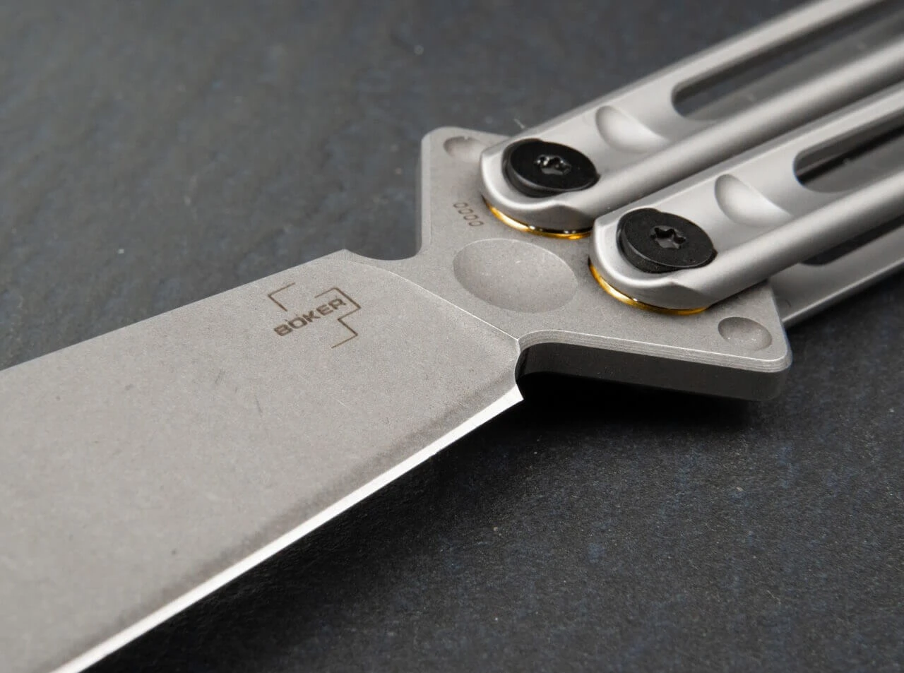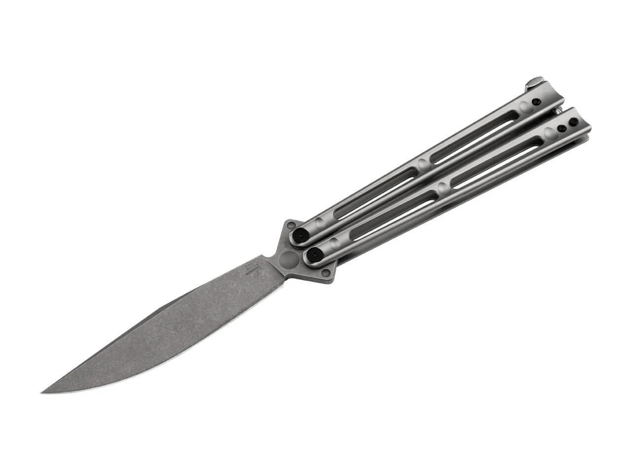 Das Böker Plus Papillon ist ein ausgewachsenes Balisong mit skelettierten Edelstahl-Griffhälften, die mit einem matten Beadblast-Finish versehen sind. Das auch als Butterfly-Messer bekannte Balisong verdankt seinen Namen dem einfachen Faltmechanismus des geteilten Griffs, der deutlich weniger anfällig für Verschmutzungen ist als andere Mechanismen. Die kugelgelagerte Clippoint-Klinge wird aus D2 gefertigt und ist mit einem ebenfalls matten Stonewash-Finish versehen. Die ausgeprägte Fehlschärfe unterstreicht den taktischen Charakter des Messers. Mit hochwertigem Nylon-Etui zur Aufbewahrung..